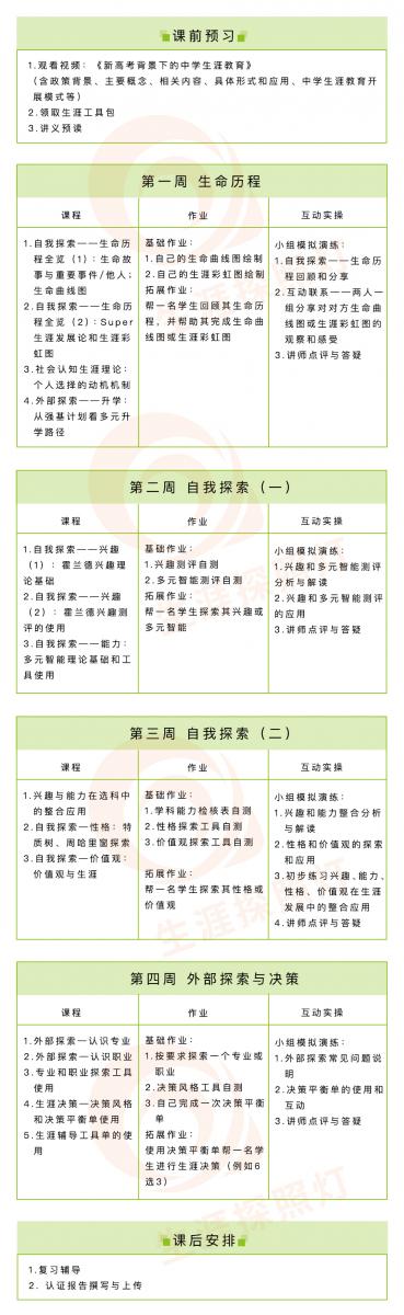 目前位置: 首页 培训课程 生涯探照灯中学生涯规划基础班(NCDA CDP)第三十九期 生涯探照灯中学生涯规划基础班(NCDA CDP)第三十九期 教育合作伙伴:北京生涯探照灯教育科技有限公司 上课地点:北京市 上课地址:北京市海淀区中关村大街18号中关村互联网教育中心B座 上课期间:2024-11-19 ~ 2025-01-15 上课日期及时间: -/0hr hr (午休时数) 师资: 侯志瑾(Hou Jr Jin) 申宇辰(SHEN Yu Chen) 高艳 倪竞 徐琳 授课教材: 学分: 学分 课程费用: 定 价 CNY 5,280(含认证费用) 认证费用: CDP 0 已经过期 课程介绍: 课程大纲: 课程表: 备注: 汇款资讯: 相关课程 生涯探照灯中学生涯规划基础班(NCDA CDP)第八期 北京创越未来NCDA CDP国际生涯规划师培训 第6期 NCDA CDP 国际职业生涯咨询师 11th 2017 前海生涯NCDA CDP国际生涯规划师认证班(福州线下班) 相关花絮 返回列表