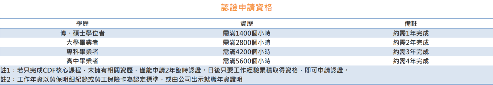 «严谨培训方案:CDA培训课程将接受专业讲授课程及实作演练,并须完成个案报告。从理论解析到助人实作演练,扎实的课程设计及实作指导,将奠定CDA专业服务品质之基石。
